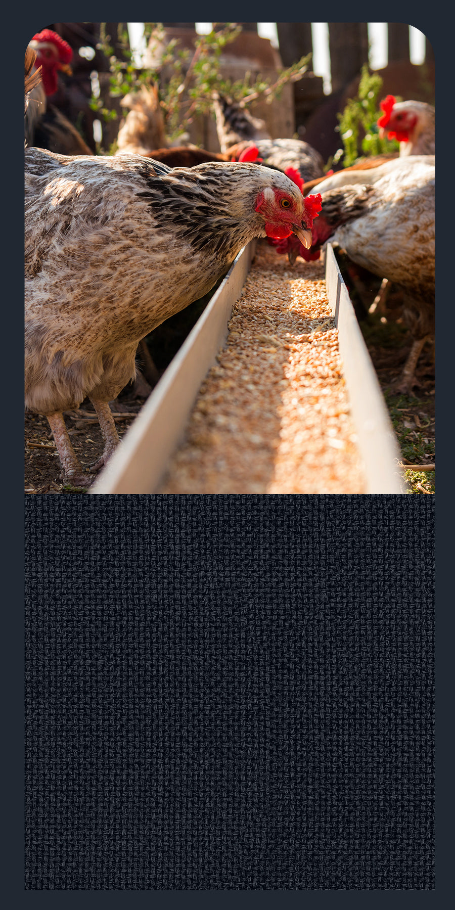 Primero está nuestro 18% Layer Mash : es un alimento completo que consta de ingredientes finamente molidos con todas las vitaminas, minerales y proteínas necesarias para producir huevos.